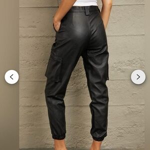 Kancan Black Pleather High Rise Cargo Jogger Pants Size 7 / 27