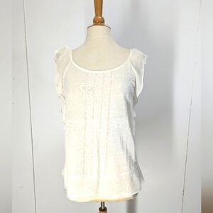 Free People Olive Green Gauze Peplum Top With Tiered Sleeves Open Back L