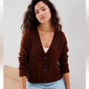 Chic cream turtleneck with cable knit design. Soft and warm for any season. Sooo soft, retails for $90! Has a small faded blue stain but otherwise like new