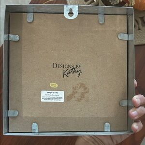 Features a black background with white lettering and a silver box frame approx. 2” thick.