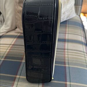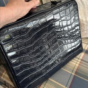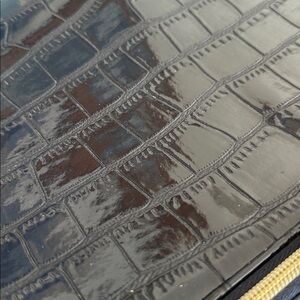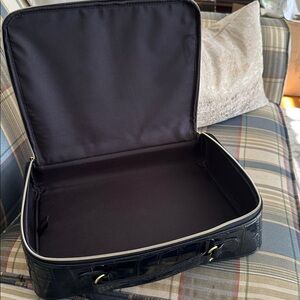 ESTEE LAUDER Navy Croc Faux Patent Leather Large Square Case Zipper Bag NEW