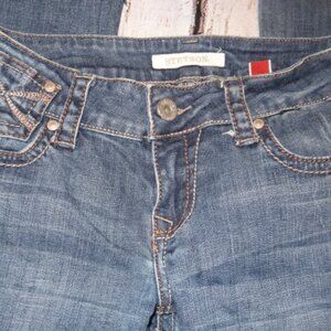 Women's boot cut Stetson blue jeans. They are in great pre-worn condition and are a size 2, the waist measures 13" laid flat and the inseam is 30"
