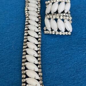 Stunning Kramer Silvertone Marquise Shaped Milk Glass Bracelet and Earring Set