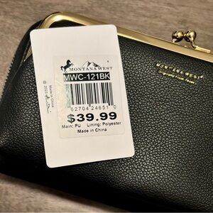Montana West Black Leather Wallet with Crossbody Strap NWT