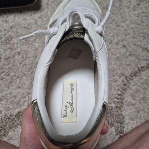 My mom ordered these and then never wore them! (somebody) came out with a gold sneaker shortly after she bought these, and she no longer wants the style. They sat in her closet for a while but have never been worn.