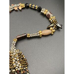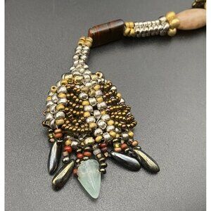 Artisan Necklace Boho Natural Stone Shell Glass Bead Antiqued Bronze Toggle 38"