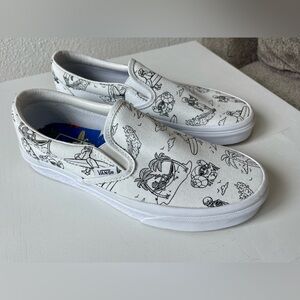 Vans Classic Slip-On Low Tide True White Skeleton Skull Beach Surfing Shoes 7.5