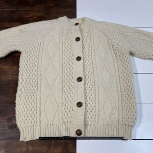 Vintage Cladyknit Irish Fisherman 100% Merino Wool Cardigan Sweater