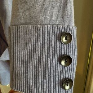 Stylish lavender cardigan paired with a patterned scarf. Perfect for layering. Brand new without tags (was a very generous gift but lavender is not my color)