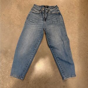 Worn and washed once. Satin drawstring included but not in the shorts. I removed it. Excellent condition with a very roomy fit. They fit like a large.