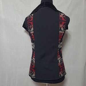 Anama Open Front Vest Women's Size Small Aztec Print Black Red Tan soft Collar