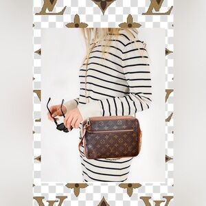 Elevate your style with this Louis Vuitton browr monogram crossbody bag. Pertect for any occasion, this bag combines luxury and functionality.