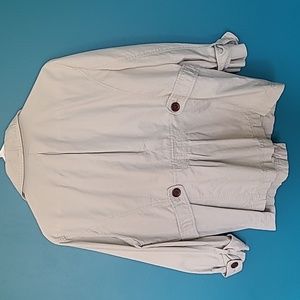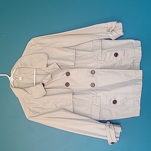 Elegant double-breasted blazer with button accents. Features a classic collar and rolled cuffs. Ideal for a sophisticated ensemble.