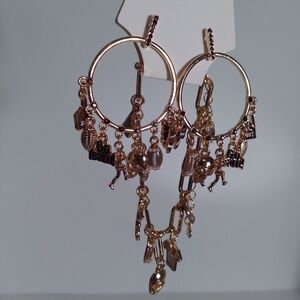 Elegant gold plated charm hoop earrings with matching charm bracelet. Perfect for adding a touch of glamour to any outfit. These earrings feature a variety of playful football charms, making them a unique accessory for game day or any occasion