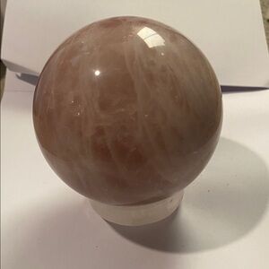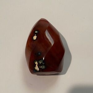 Unique multicolor stone mushroom decor. Features shades of brown, green, and red.