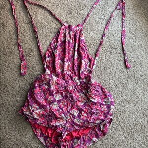 Cute open back romper from free people. Size xs but runs large. Ties twice in back. Worn once.