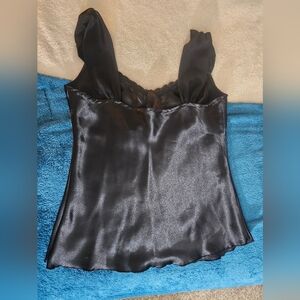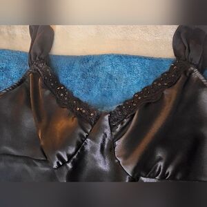 This elegant black satin blouse is perfect for any occasion. Its sleek design and luxurious fabric offer a sophisticated look.