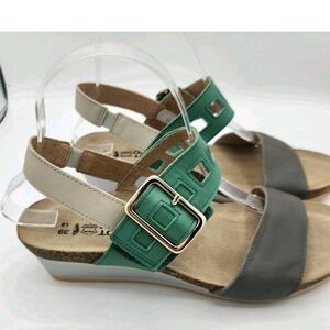 Naot Dynasty Jade Gray Cream Sandal Buckle Strap Womens Size 39 US 8 New