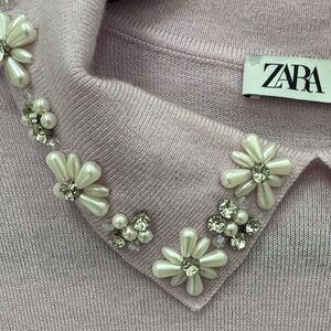 Zara Light Purple Sweater with Pearl Diamond Flower Collar