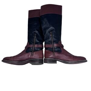 Vince Camuto Flavian Riding Boots Buckle Knee High Leather Black Brown Size 7B