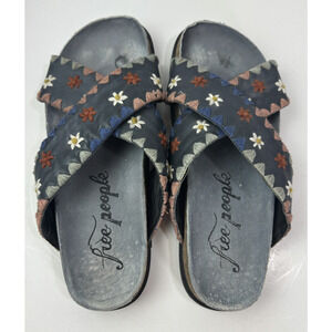 Free People Wildflowers Embroidered Floral Sandals Blue Slides Size 38 US 7.5