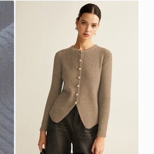 Chic burgundy knit cardigan dress with a flared silhouette. Ideal for versatile styling.
