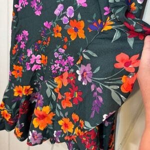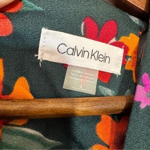 Calvin Klein Dress Green Floral Faux Wrap Midi Ruffles Size 4 in Malachite