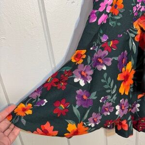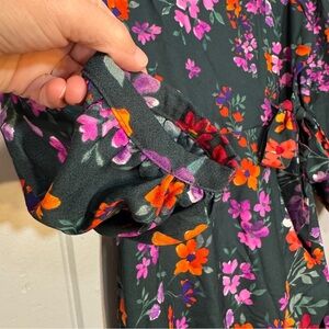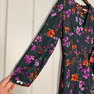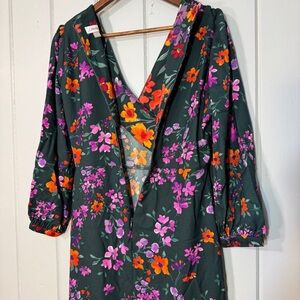 Calvin Klein green floral faux wrap midi dress. V neck, side tie with long sleeves.