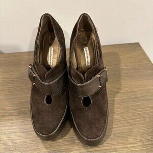 VTG 90’s Calvin Klein Brown Suede Platform Chunky Heel Retro Women’s Size 8.5