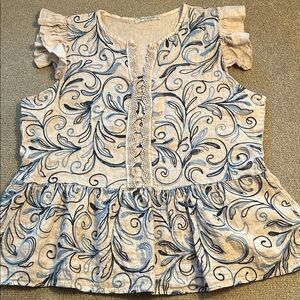 Black stone washed cotton/canvas bag with short fringe accents. Top zip closure. Front features 100% cowhide, textured leather, and woven southwestern design. brown leather double handles, drop length 14”. Features outer pocket for cell phone storage. Inside clean with one zipper pocket. No rips stains or tears. One small area has some thinned out fringe as pictured. See pictures for measurements and condition.