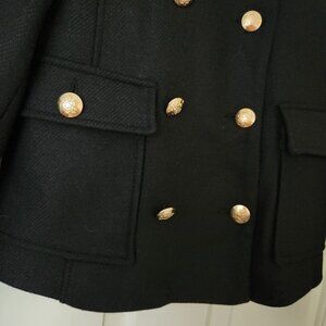 Zara Black Wool Military Jacket Gold Buttons Fall Winter Old Money Glam Preppy