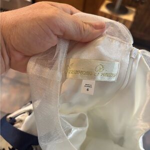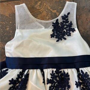 Charming kids dress with navy lace on white fabric. Perfect for formal events. Comfortable and stylish. Bundle more than one listing and this will be 3.00.