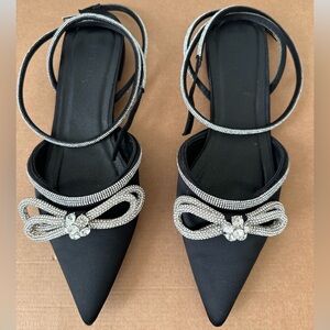 Step out in style with these elegant black women's shoes, featuring a dazzling rhinestone bow. Perfect for any occasion, these shoes offer both comfort and sophistication.