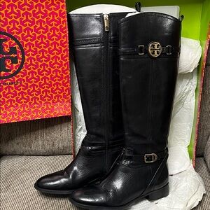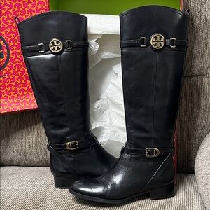 Tory Burch Black Leather Tall Boots