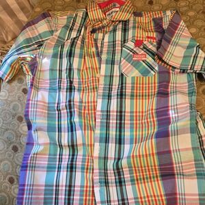 Add a splash of color to your wardrobe with the Parish Nation vibrant plaid men's shirt. Perfect for casual outings, this shirt features a lively mix of colors for a bold statement.