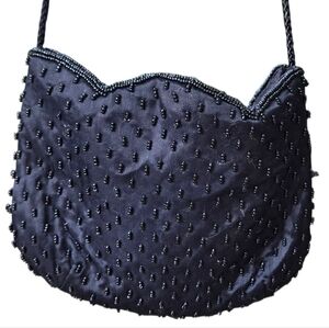 VINTAGE Mini Black Crossbody Beaded Purse GUC