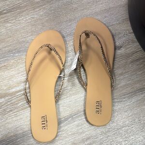 Chic leopard print straps. Comfortable tan footbed. Ideal for everyday wear.