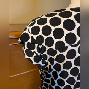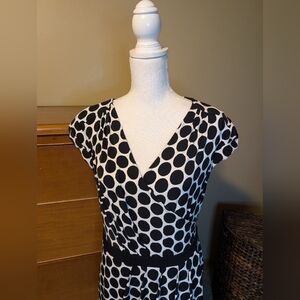 New York & Company Black and White Polka Dot Stretch Dress Cap Sleeve XL