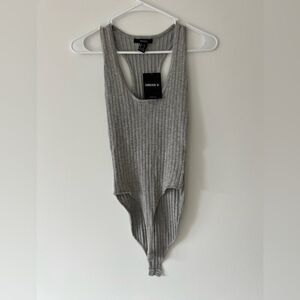 NWT Forever 21 Gray Ribbed Knit Scoop Neck Racer Back Bodysuit