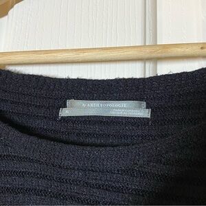 Anthropologie Oversized Slouchy Knit Pullover Sweater. Size XLarge. Black color. Scoop boat neckline. Asymmetric slanted hemline. Long sleeves. Striped textured knit. Stretchy. Great condition no flaws.