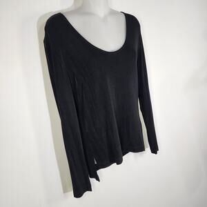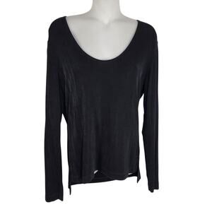 Chico's Travelers Womens Tee Black Knit Slinky Scoop Neck Long Sleeve Medium Top