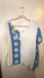 POL Blue/Cream 100% Cotton Oversized Two-Tone V-Neck Off-the-Shoulder Crochet Floral Bohemian Boho Blouse, Size Small