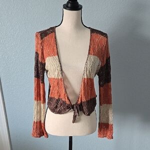 WORTHINGTON Vintage Shrug Open Weave Brown Orange Beige Metallic Sz 1X. Lightweight shrug bolero great topper for dress, jeans, shorts. Ideal for country fests and cowboy boots!