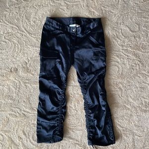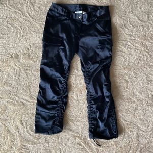Step out in style with these elegant black satin pants. Perfect for any occasion, these pants offer a sleek and sophisticated look.