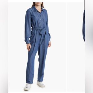 Tommy Hilfiger shirt with red collar. White body with logo accents. Casual and stylish.