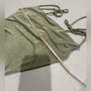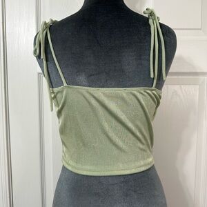 Chic light green camisole with draped front. Perfect for layering or wearing alone. Soft and stylish.