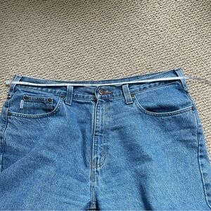 Classic relaxed fit / straight leg jeans by Carhartt. Durable denim for everyday wear. Size tag missing - please see measurements. Measures to size 38 waist. Comes from a smoke-free home.