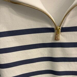 NWOT Dudley Stephens Striped White and Navy Quarter-Zip Pullover