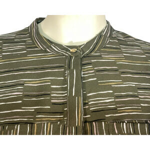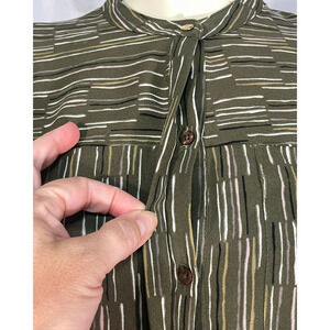 Apt. 9 Sz M Shirt Dress with Belt Roll Tab Sleeves Above-Knee Mod Olive Stripes