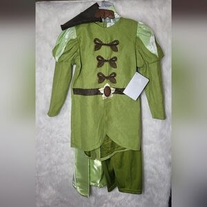 New with Tags Prince Naveen Disney Costume in the color Lime Green. Comes with Top, pant, shoe covers, cape.